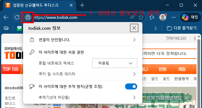 1. ¸µÅ© ¼Ò ¾ÕÀÇ [»çÀÌÆ® Á¤º¸ º¸±â] ¾ÆÀÌÄÜ Å¬¸¯